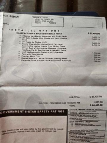 BY FAR THE NICEST LS500 WE HAVE EVER HAD - 88K MSRP! PEARL WHITE WITH BLACK LEATHER, ONLY 45K MILES (ONLY DRIVEN 7600 MILES EACH YEAR!), WITH LOTS OF FACTORY UPGRADES LIKE... ADAPTIVE VARIABLE AIR SUSPENSION PACKAGE (+ $1500), 20 SPLIT 10 SPOKE WHEELS IN VAPOR CHROME (+ $1200), 24 HEADS UP DISPLAY (+ $1220), INTERIOR FACTORY UPGRADE WITH 28 WAY SEATS AND MASSAGE (+ $3730), AMAZING MARK LEVINSON FACTORY SOUND SYSTEM (+ $1940), PANORAMIC VIEW MONITOR (+ $800), PREMIUM WOOD TRIM (+ $800), HEATED WOOD AND LEATHER TRIMMED STEERING WHEEL (+ $410), AND LASTLY, CARGO NET-TRUCK MAT-REAR BUMPER APPEARANCE PACKAGE...AND MUCH MORE! THIS CAR NEW WAS $88455 AND WE HAVE IT PRICED TO GO! PRICE LISTED IS FOR CASH PLUS TAX TAG TITLE AND FEES. FINANCING IS AVAILABLE AND TRADES ARE WELCOMED. COME SEE WHY CARGURUS.COM RATES US ONE OF THE BEST DEALERS IN GEORGIA TO DO BUSINESS WITH! GOD BLESS :)