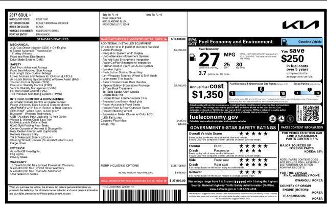 1 OWNER W/EXCELLENT SERVICE HISTORY! **VERY RARE FACTORY EDITION SOUL+!** SPECIAL EDITION PACKAGE S13 - BROWNSTONE - (DARK BROWN BODY WITH WHITE TOP AND DARK BROWN LEATHER SEATING), AMAZING HARDON KARMON SOUND & SUBWOOFER WITH LIGHTING AFFECTS, NAVIGATION, APPLE CARPLAY/ANDROID AUTO, BACK UP CAMERA, BLUETOOTH, FACTORY AUDIO PACKAGE AU WITH VOICE RECOGNITION AND UVO, HEATED SEATS FRONT & REAR, HEATED STEERING WHEEL, POWER DRIVER SEAT & POWER PASSENGER SEAT, FACTORY LED TAIL LIGHTS, AND SO MUCH MORE! THIS SPECIAL EDITION SOUL WONT LAST. PRICE LISTED IS FOR CASH PLUS TAX TAG TITLE AND FEES. FINANCING IS AVAILABLE AND TRADES ARE WELCOMED. COME SEE WHY CARGURUS RATES US ONE OF THE BEST DEALERS IN GEORGIA TO DO BUSINESS WITH! GOD BLESS. ;)